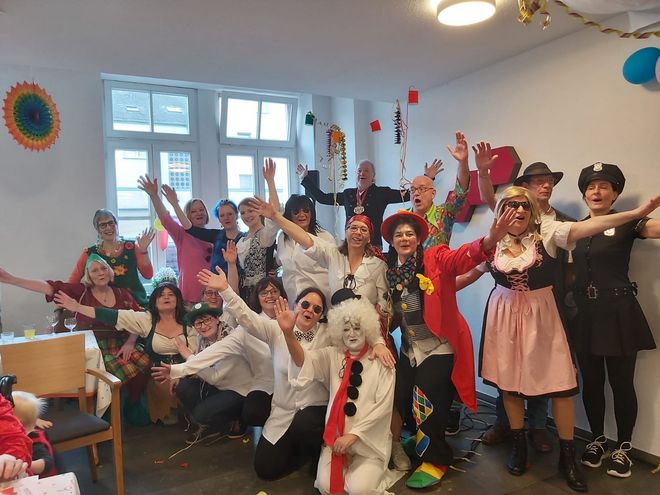Gestartet wurde die närrische Woche mit der Feier im Helenenhaus. Gemeinsam mit den ehrenamtlichen und hauptamtlichen Mitarbeitern sowie Gästen konnten die Bewohnerinnen und Bewohner den närrischen Tag genießen. Gemeinsam wurde gesungen, getanzt, geschunkelt und vor allem viel gelacht! Das Helenenhaus-Team hat ein tolles Programm mit Tanz- und Sketchdarbietungen geboten. Schließlich gab sich auch das Prinzenpaar der Stadt Trier die Ehre und besuchte unsere Karnevalisten im Helenenhaus. Ein herzliches Dankeschön nicht nur an das Prinzenpaar sondern an alle, die diesen besonderen Tag ermöglicht haben!