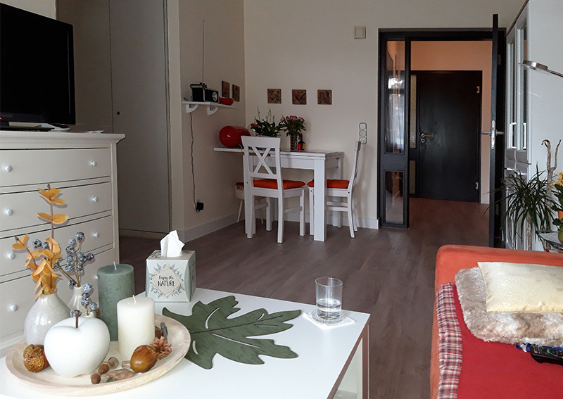 Das Haus verfügt über 66 Ein-Personen-Appartements (ca. 36 m²) sowie 10 Zwei-Personen-Appartements (ca. 65 m²), die Sie nach Ihren eigenen Wünschen und Vorstellungen einrichten können. Alle Wohneinheiten sind bequem mit einem Aufzug zu erreichen. Die Appartements sind unmöbliert und bestehen jeweils aus einem Wohnzimmer, einer Schlafnische und einer komplett eingerichteten kleinen Küchenzeile. Des Weiteren einer seniorengerechten Sanitäreinheit in barrierefreier Ausführung mit bodengleicher Dusche, Haltegriffen und einem Waschbecken. Darüber hinaus sind in Ihrem Appartement ein Telefon- und Fernsehanschluss, eine Notrufanlage sowie eine Gegensprechanlage mit elektrischem Türöffner vorhanden. Die Ausstattung Ihres Appartements wird komplettiert durch einen Abstellraum und je nach Lage einem Balkon oder einer Terrasse.